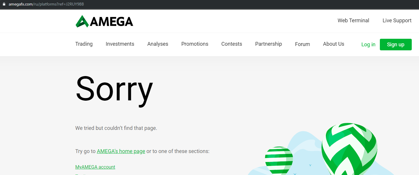 Подобная работа сайта норма для компании Amegafx? Тогда вопросов нет.