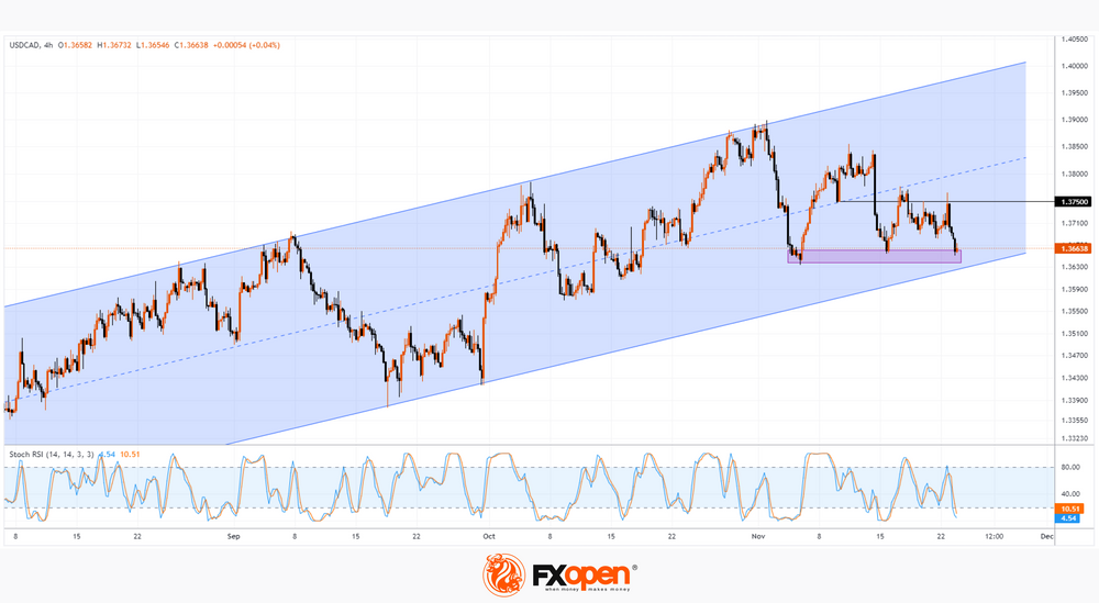 При этом индикатор Stoch RSI опустился в зону перепроданности. С точки зрения технического анализа, на графике заметны предпосылки для формирования отскока. Если он будет достаточно сильный, цена сможет достичь сопротивления 1.375.