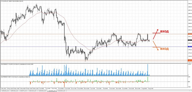 Пробойное движение должно быть резким и поддержано крупным объемом. Это будет более точным и надежным сигналом для входа в рынок. Стоп лосс стоит ставить ниже/выше пробойного объемного бара или движения. Потенциал продаж – более 100 пунктов, покупок – 50-60.