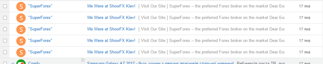 5. ДЦ СуперФорекс не предоставляет возможность отписаться от рассылки писем самостоятельно.